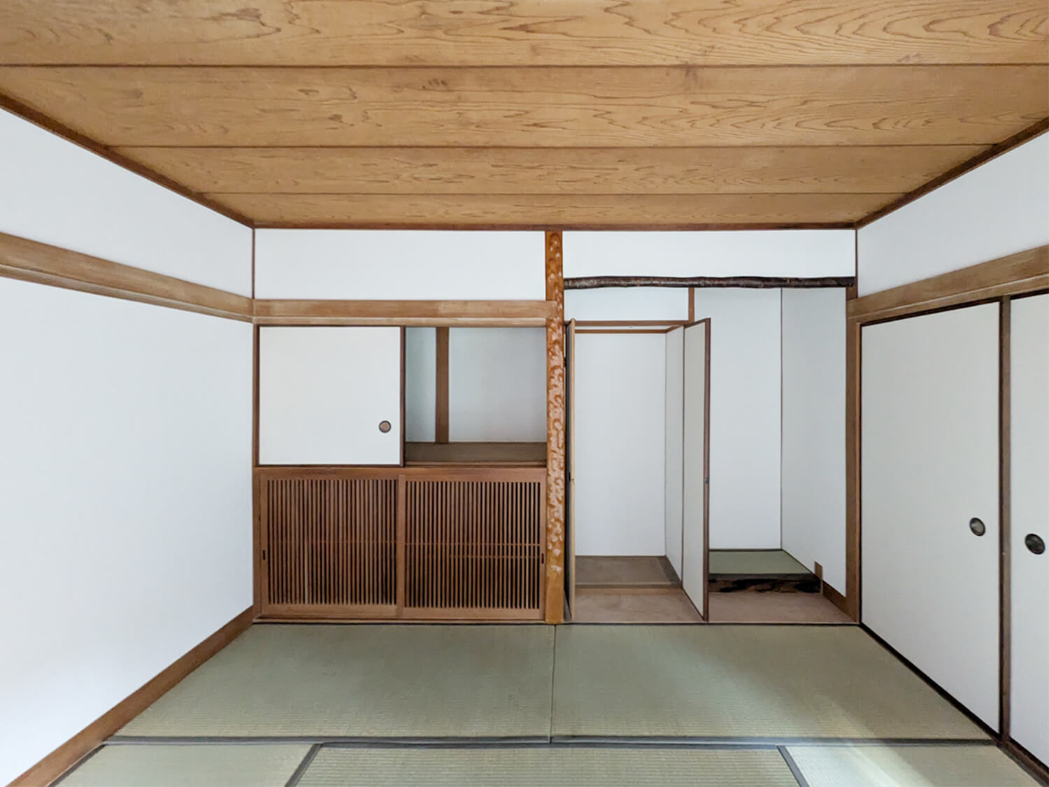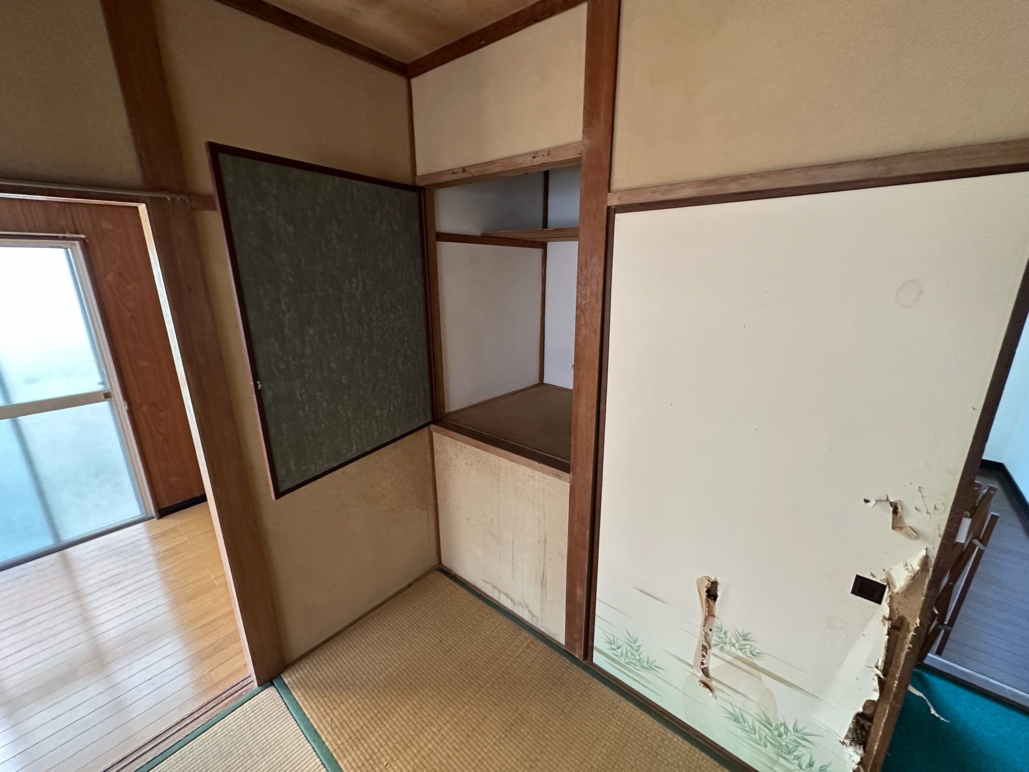 クロス汚損、畳日焼け、木部剥がれ等劣化のみられる場所は全て張替、表替えを行いました♩