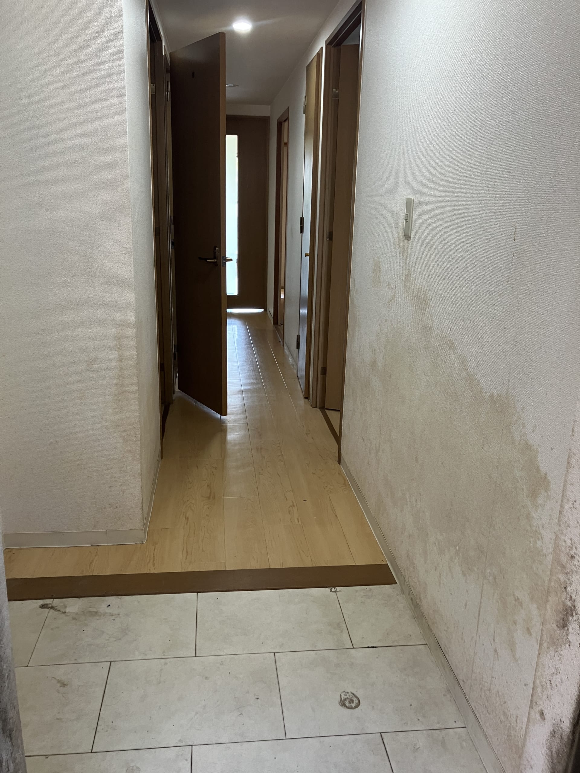 かなり汚れていた玄関廊下も全面クロス張替で綺麗なお家の入口に✌️